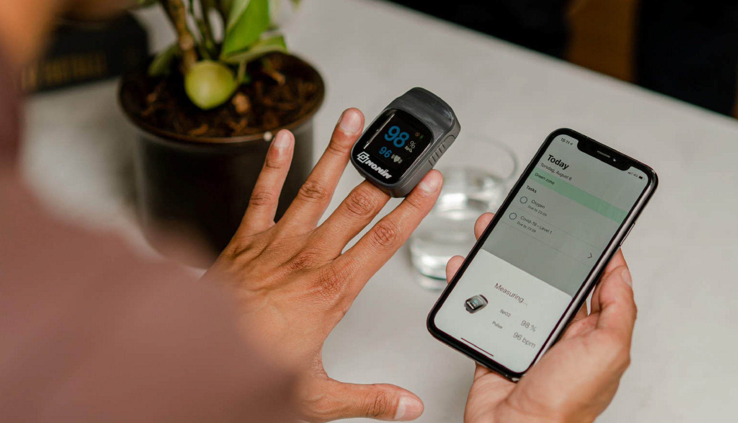 اپلیکیشن توسعهیافته توسط شرکت نرمافزارهای پزشکی Dignio به بیماران کمک میکند تا با آسودگی در خانه تحت نظارت خدمات مراقبتی باشند. بیمارانی که از این برنامه استفاده میکنند، اپلیکیشن MyDignio را دانلود کرده و از دستگاههای پزشکی مجهز به بلوتوث آن استفاده میکنند. دستگاهها دمای بدن و سطح اکسیژن خون فرد را پایش میکنند. این برنامه به یک صفحه نمایش در مرکز بهداشت محلی متصل میشود که اجازه میدهد این خوانشها توسط تیم بالینی ارزیابی شوند. کاربران علائم خود را از طریق یک پرسشنامهی درونبرنامهای نیز گزارش میکنند.